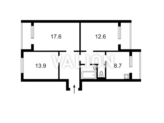 3 комнатная 70/41/7 м2 9/9 эт.
