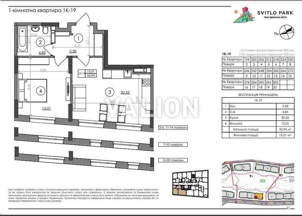 Продажа 1-комнатной квартиры, ЖК Svitlo Park, Столичное шоссе 3-А, метро Выдубичи 900м, Голосеевский район. Возможна продажа по еВосстановлению. Класс: Комфорт. Технология строительства: монолитно-каркасная, стены - газоблок/кирпич, утепление - минеральная вата. Характеристики квартиры: Площадь: общая - 33 м2, кухня - 13 м2, спальня - 11 м2. Этаж: 3/25, окна во двор. Высота потолка: 2,7 м. Планировка: комнаты раздельные, санузел совмещенный. Ремонт: новый и современный с качественной мебелью под заказ и техникой ведущих брендов (Electrolux, Whirlpool, Mitsushito, Grohe, электрика Hager). Резервное питание: генератор. Отопление: централизованное. Паркинг: гостевой и подземный. Закрытый ЖК без авто с ландшафтным дизайном, видеонаблюдением и охраной. Цена 76000 у.е. 0937470721 Наталья valion.ua/1143457