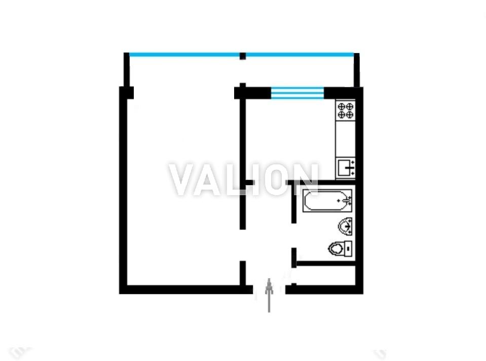 Общая площадь 33,5м2, большая комната 19,2м2, кухня 5,5м2.