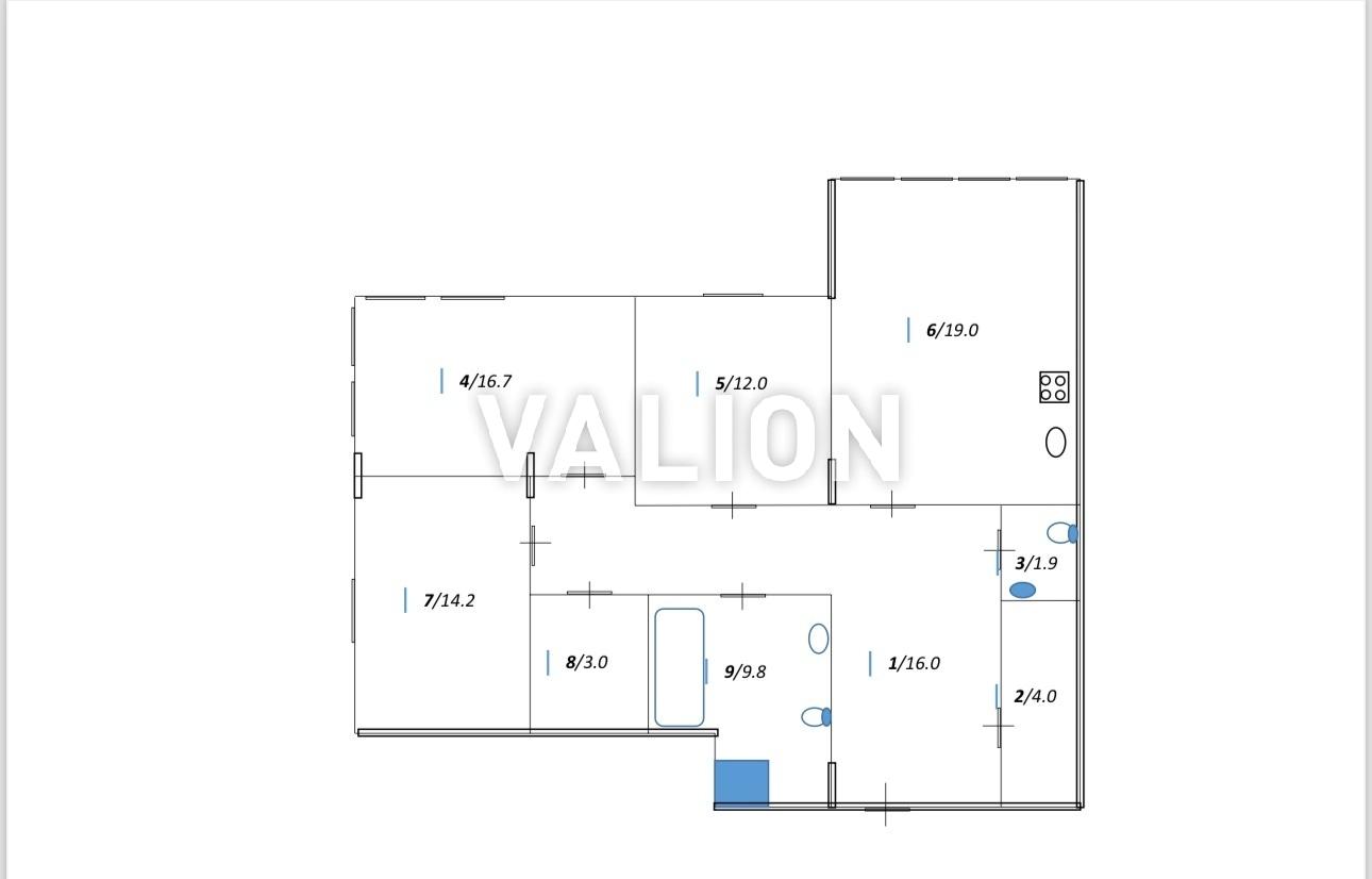 3 комнатная 218/62/19 м2 19/22 эт.