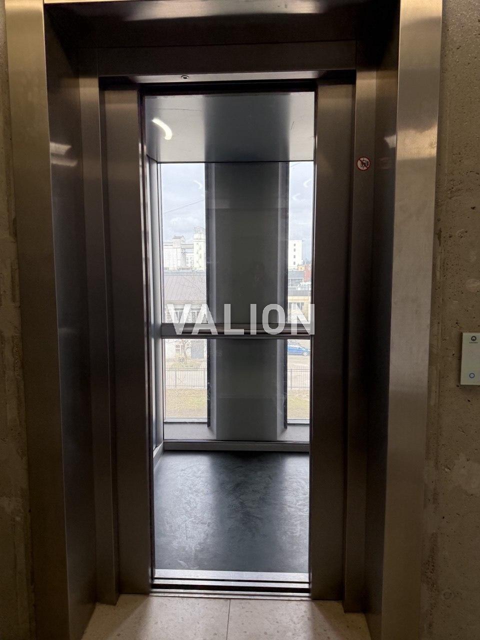 В парадном месте для хранения велосипедов и колясок, панорамный лифт с видом на ул.Кирилловскую.