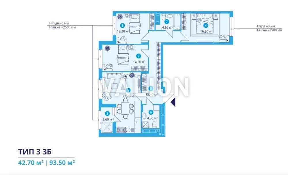 Продам 2-комнатную квартиру 58.5 м2 в ЖК SKY AVENUE. Продается (переуступка) 2-х комнатная квартира в ЖК SKY AVENUE, ул. Святослава Хjороброго 11, Соломенский район, Квартира расположена на 11 этаже 16 этажного дома. Дом 2025 г. Общая площадь 58.5 м2 Планировка: кухня - 14 м2, две отдельные комнаты 25 кв.м, , два санузла, застеклена лоджия. Состояние квартиры: после строителей, стенки – штукатурка, пол – стяжка. На территории ЖК есть гостевой и подземный паркинги, двор с ландшафтным дизайном, спортивными площадками. Квартира предлагается по переуступке, дом уже готов, сдача 4 квартал 2025 года. Цена 95500 долларов США Светлана, тел. 096-126-02-44 valion.ua/1142496