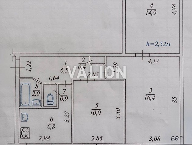 Общая площадь 54 м2.Находится на 2-м этаже ,2-х этажного дома. Кирпичный дом, очень теплый. Планировка на две стороны, которое утеплено пенопластом с обеих сторон .