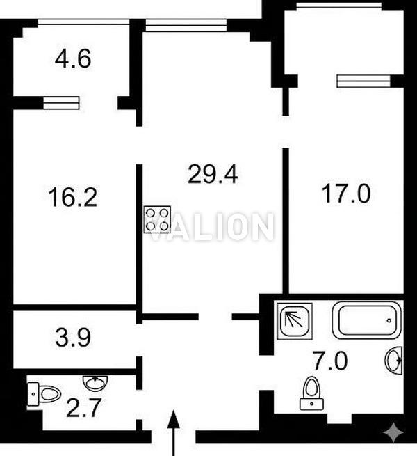 • Высота потолка: 2.7 м