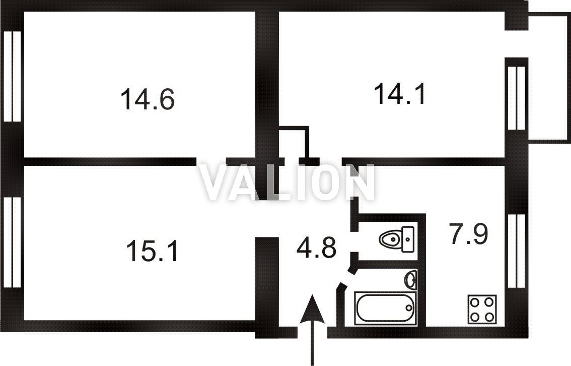 2 комнаты 44/31/6 м2 2/5 эт.