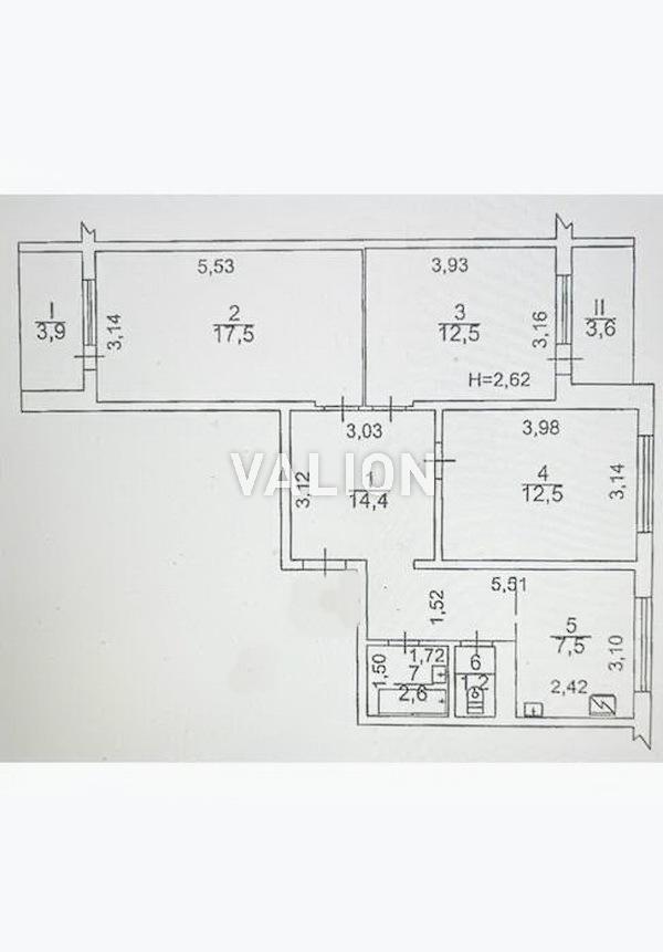 3 комнаты 69/42/7 м2 5/9 эт.
