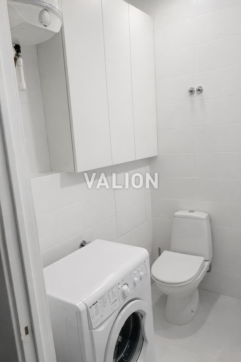 В ванной комнате установлена ​​душевая кабина, бойлер и стиральная машина.