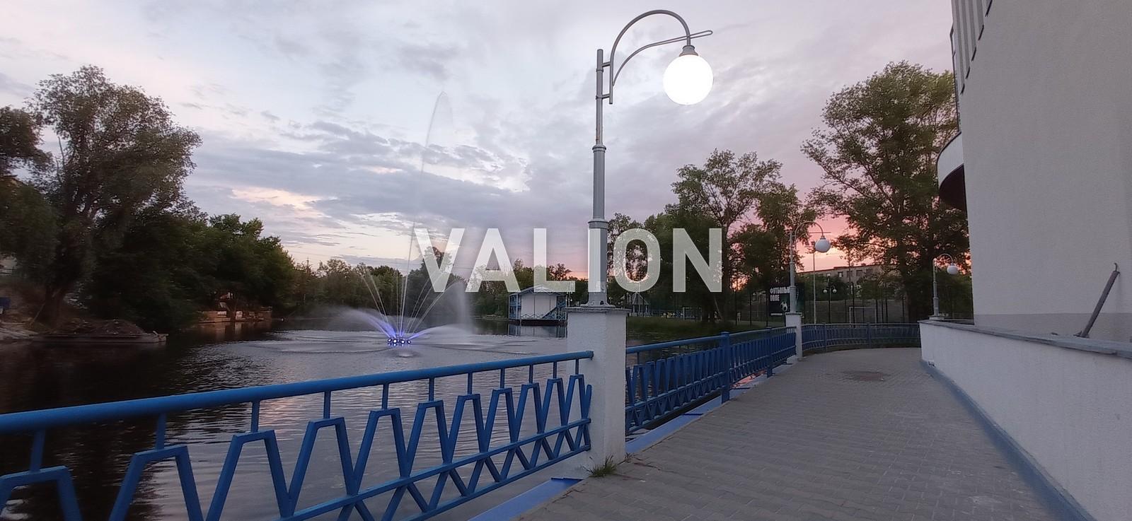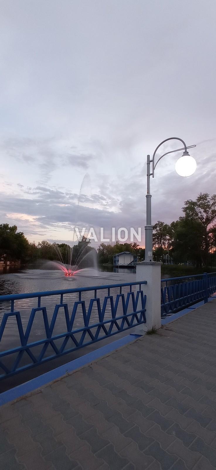 Вечером работает фонтан.