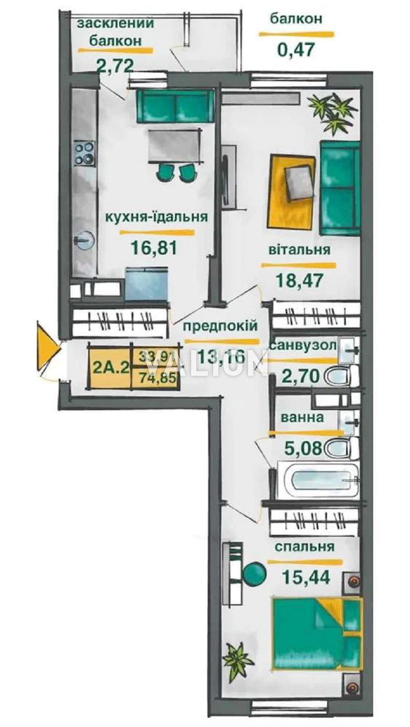 Продажа 2-комнатной 75.7 м² квартиры ЖК Сырецкие садыул. Ивана Выговского, 10-С