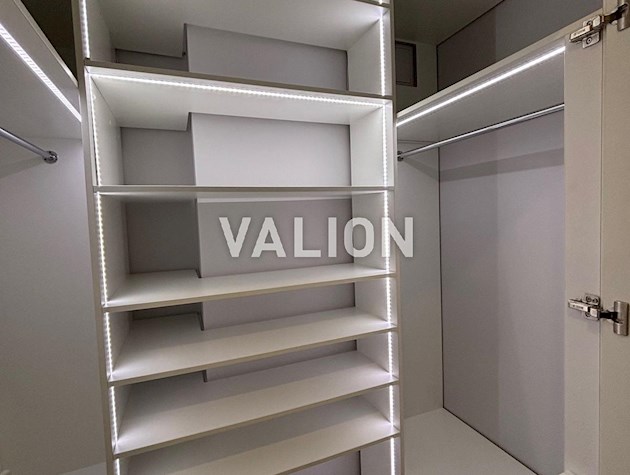 площадью 15 м2 с остекленным балконом, просторную кухню-гостиную площадью 22 м2, санузел 5 м2, гардеробную, прихожую, стиральную комнату с дополнительными местами для хранения.