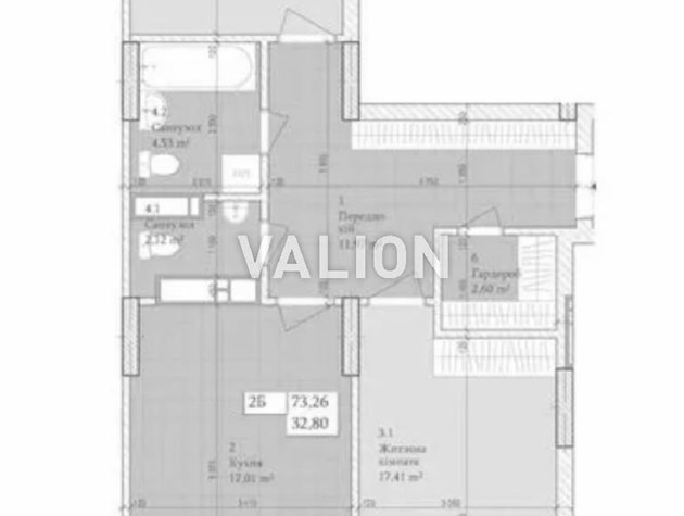 2 комнаты 76/32/17 м2 13/26 эт.