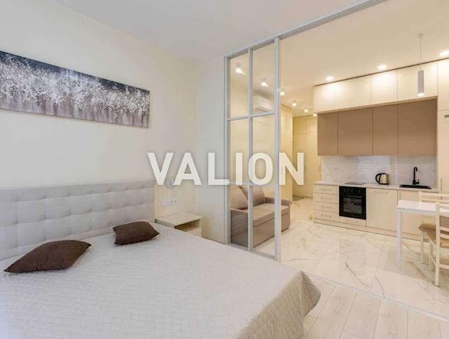 Без комиссии для покупателя. Однокомнатная квартира в ЖК «52 Жемчужина» – премиальный жилой комплекс в стиле неоклассицизма с эркерами, витражными окнами и открытыми террасами, застройщик «Кадор групп». Крышу дома украшают 4 купола покрытых медью. Особенностью квартиры является большая площадь кухни и комнаты. В квартире панорамные окна Rehau можно установить систему «умный дом», по желанию. Входная группа и общее пространство украшены мрамором и венецианской штукатуркой. На территории комплекса круглосуточная охрана и видеонаблюдение, собственная газовая котельная, консьерж сервис 24/7 осуществляет собственный ЖЭК. У дома двухуровневый подземный паркинг, который в настоящее время является бомбоубежищем. Переуступку платит продавец. Цена: 114500 у.е.0965652777 Виктория, valion.ua/1087081