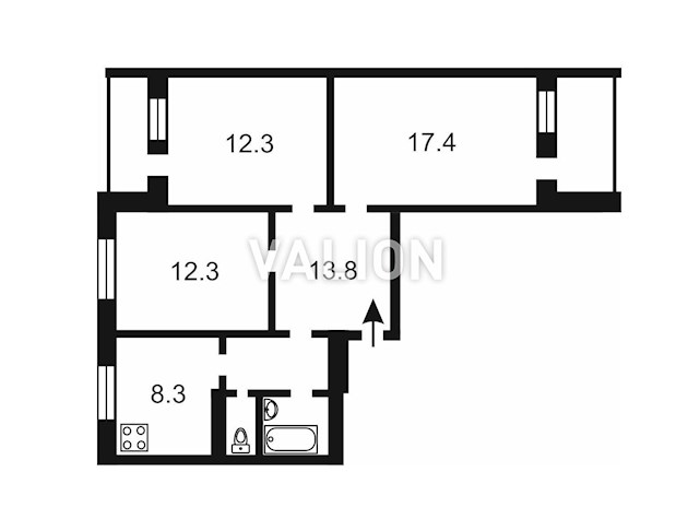 3 комнаты 79/35/23 м2 3/17 эт.