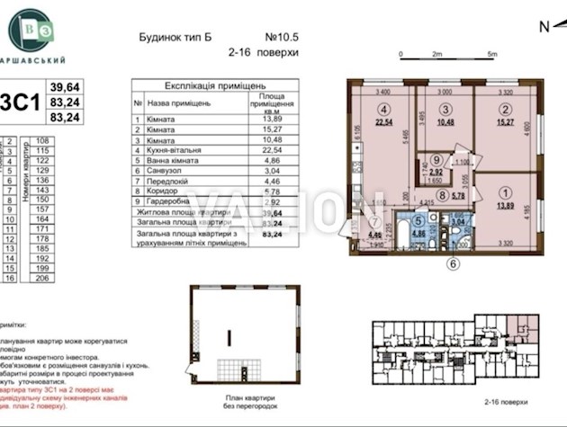 Продажа трехкомнатной квартиры в ЖК Варшавский 3 3-й этаж 79, 2 м² Дом 10.5. Планировка 3С2 Ввод в эксплуатацию 2 квартал 2026 года Метро Сырец 044 200 10 80 Valion.ua/1142641