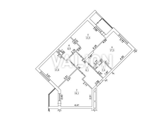 3 комнаты 99/45/23 м2 17/26 эт.