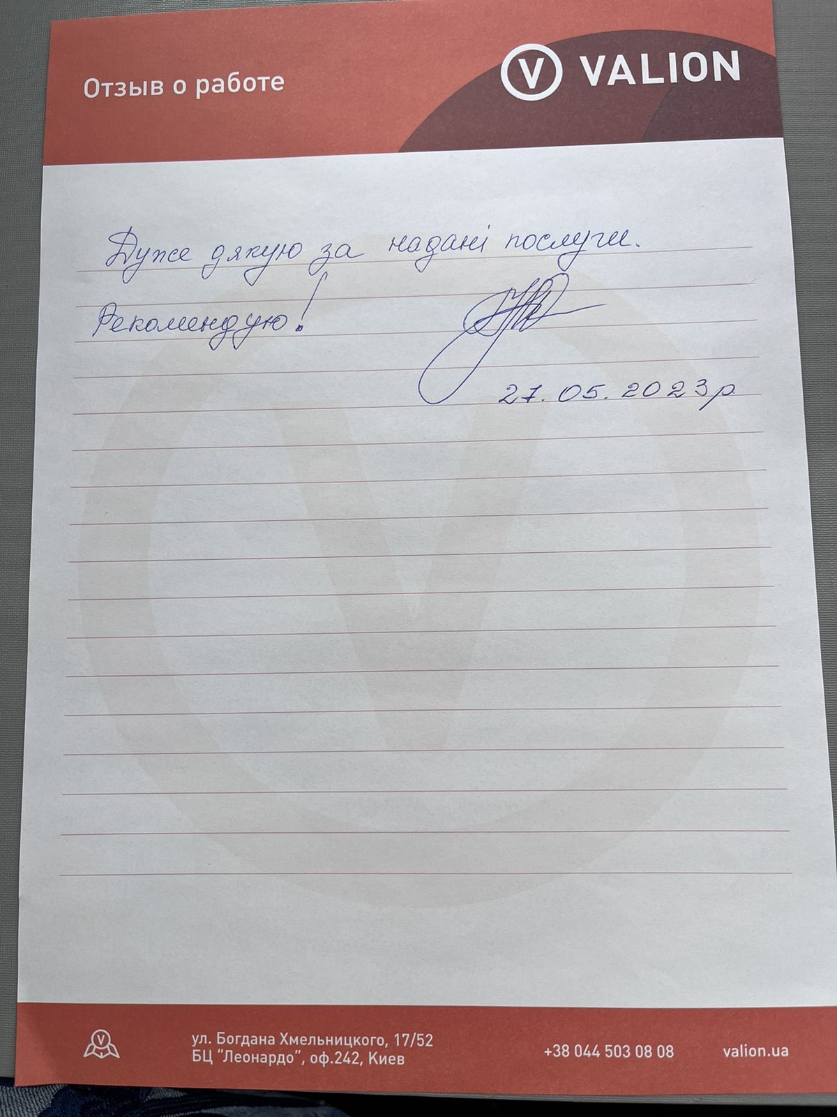 Дуже дякую за надані послуги. Рекомендую!