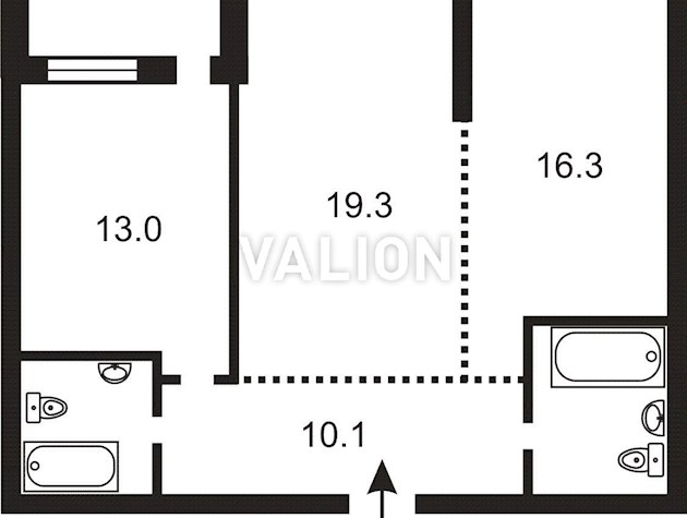 Двокімнатна 110/62/16 м2 3/4 эт.