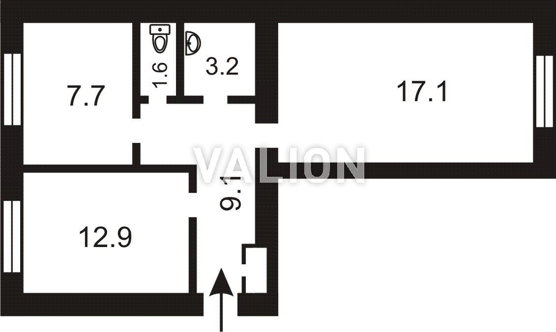 Санвузол: роздільний 3,2 м², 1.6 м²