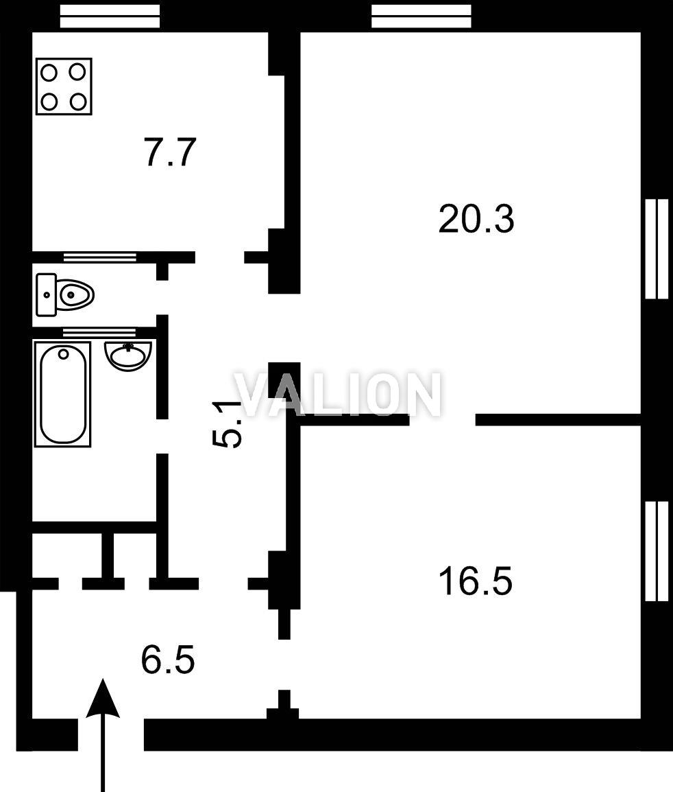 Загальна площа: 60,7 м², житлова – 36,8 м², кухня: 7.7 м²