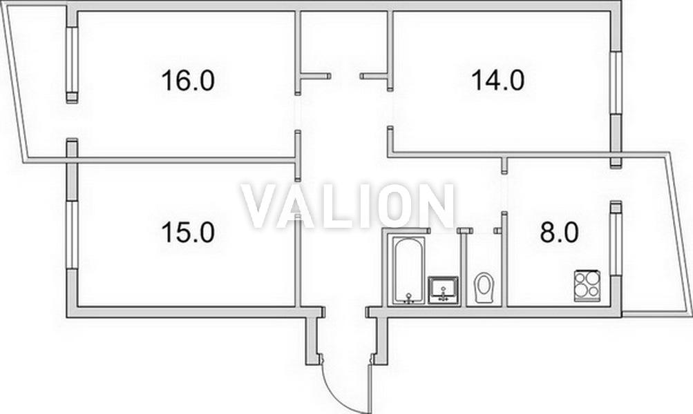 Трикімнатна 61/41/8 м2 8/9 эт.