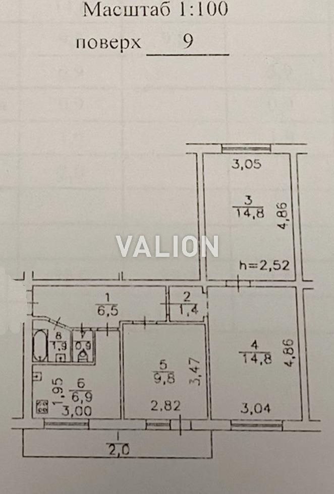 3 кімнати 70/42/9 м2 2/16 эт.
