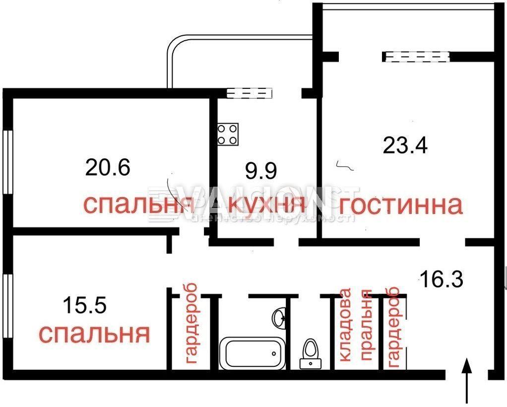 3 кімнатна 84/52/16 м2 13/28 эт.
