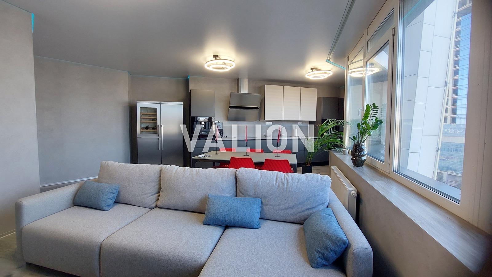 Квартира повністю укомплектована технікою від преміальних європейських виробників та дизайнерськими італійськими меблями.