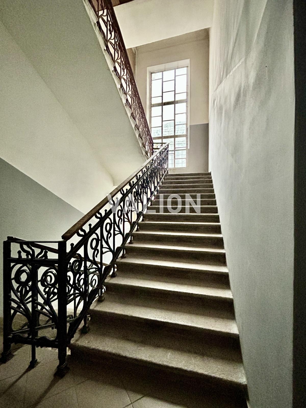 Вхід в парадне по магнітних ключах, є домофон; у під’їзді зроблений ремонт, встановлена система відеоспостереження; високі стелі у світлому парадному з великими вікнами, широкі сходи з візерунковими кованими поручнями.