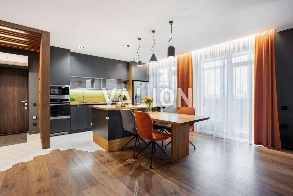 Велика кухня-вітальня (67 кв метри), три окремі спальні кімнати, два санвузли, три балкони (10 кв метри кожний) та велика тераса (35 кв метри).