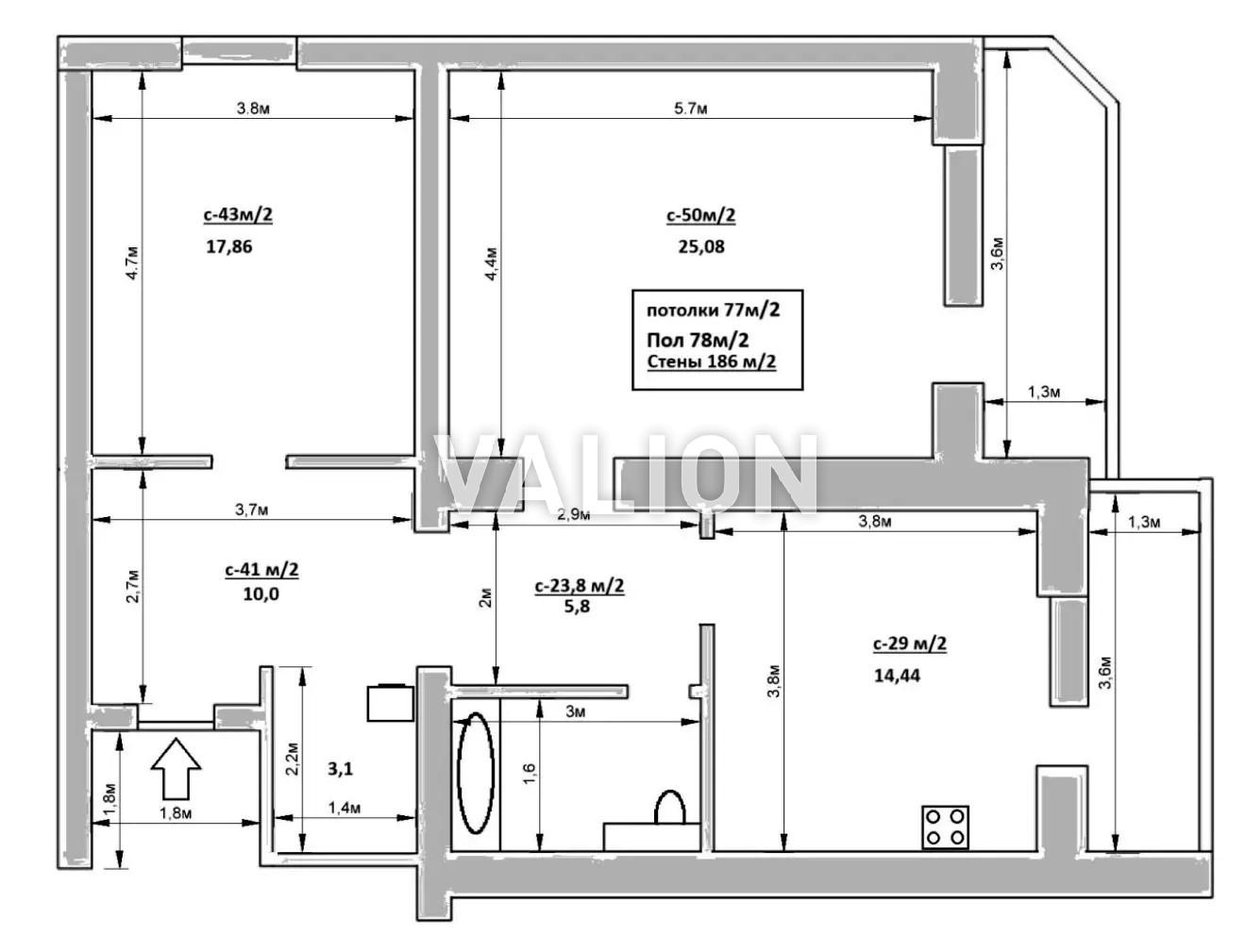 3 кімнатна 84/44/12 м2 11/14 эт.