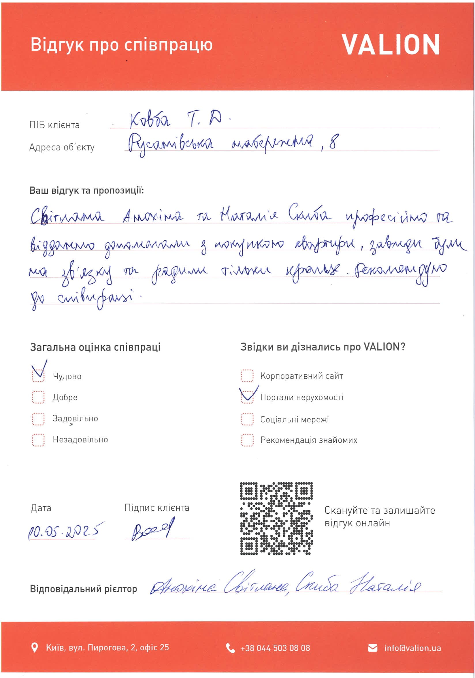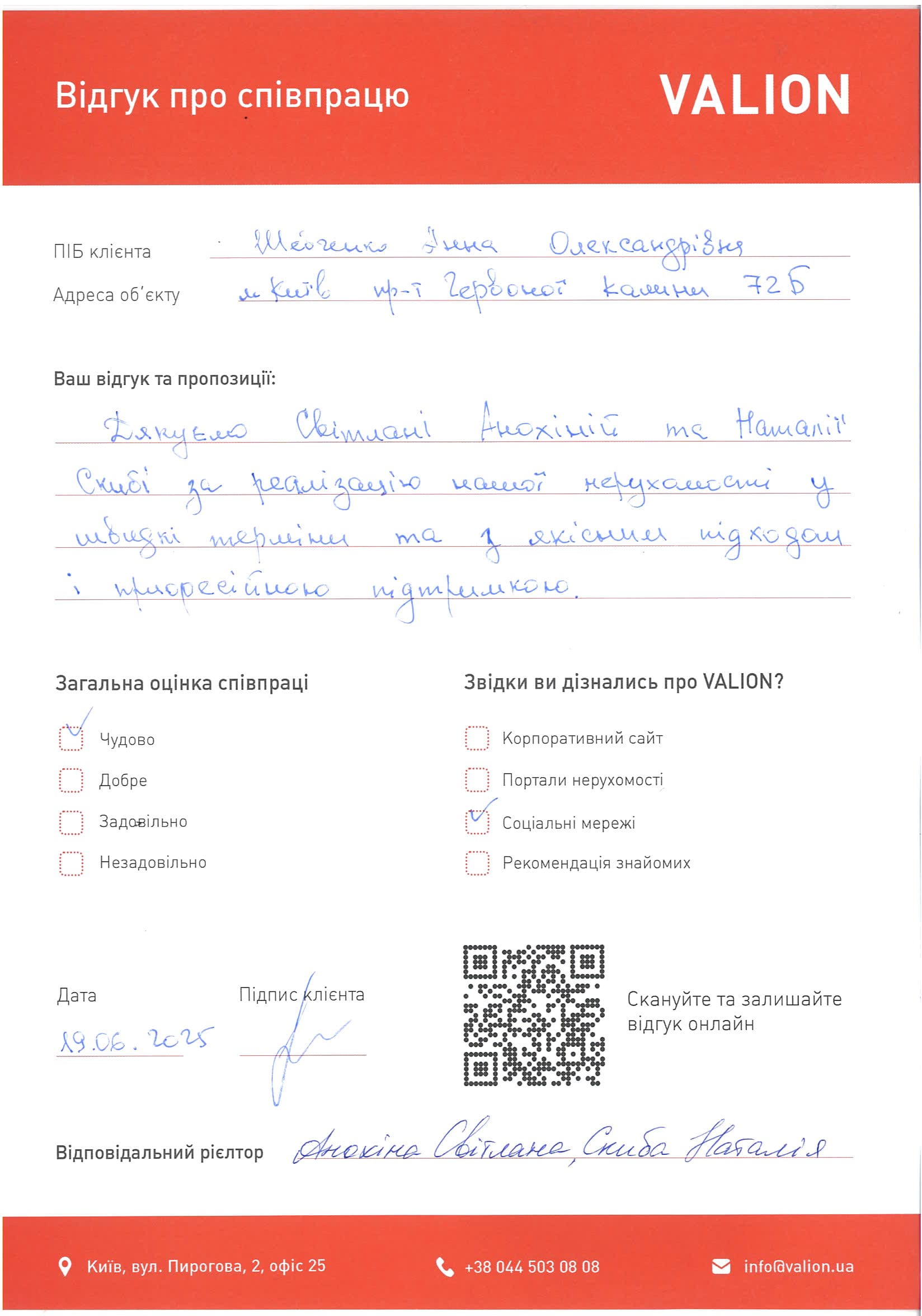 Дякуємо Світлані Анохіній та Наталії Скибі за реалізацію нашої нерухомості у швидкі терміни та з якісним підходом і професійною підтримкою.