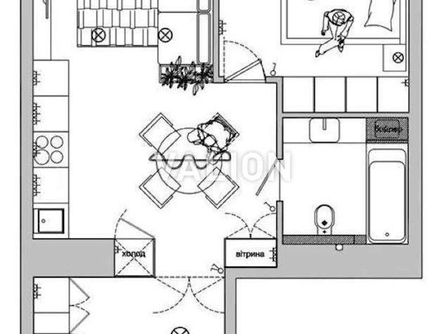 1 кімнатна 52/11/32 м2 6/30 эт.