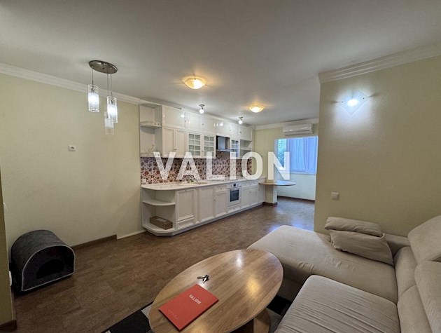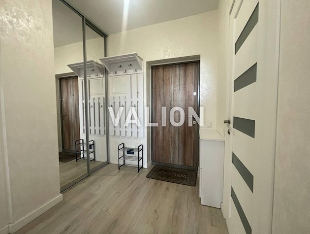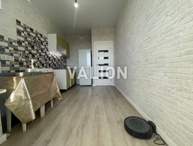Квартира повністю мебльована і готова до проживання. У залі – ортопедичне двоспальне ліжко з тумбами, зручний диван з легкої в догляді тканини, телевізор 55 дюймів, етажерка, тумба, розкладний стіл. Простір грамотно поділений на спальну та відпочинкову зону.