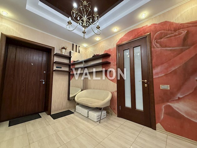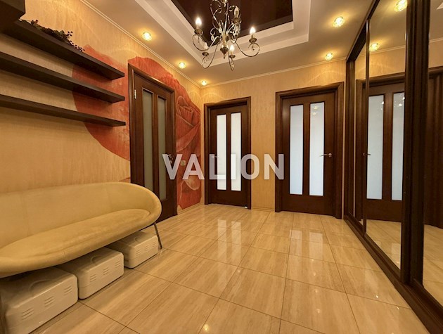 Вікна Rehau, підвіконня з натурального лабрадориту. Стелі натяжні, стіни вирівняні та пофарбовані. У кімнатах – якісний німецький ламінат, у кухні, ванній та коридорі – плитка єдиним контуром. Проведено 50 розеток і 6 інтернет-розеток, всюди LED освітлення, встановлені прохідні вимикачі. Білі міжкімнатні двері, сучасні плінтуси, два кондиціонери по 25 кв. м.
