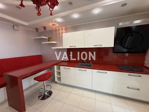 На кухні — вбудовані німецькі газова поверхня та духова шафа з конвекцією, посудомийна машина, витяжка, кран для питної води з фільтрацією (7 ступенів очищення), велика мийка. Меблі вологостійкі.