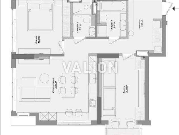 3 кімнатна 95/70/15 м2 3/23 эт.