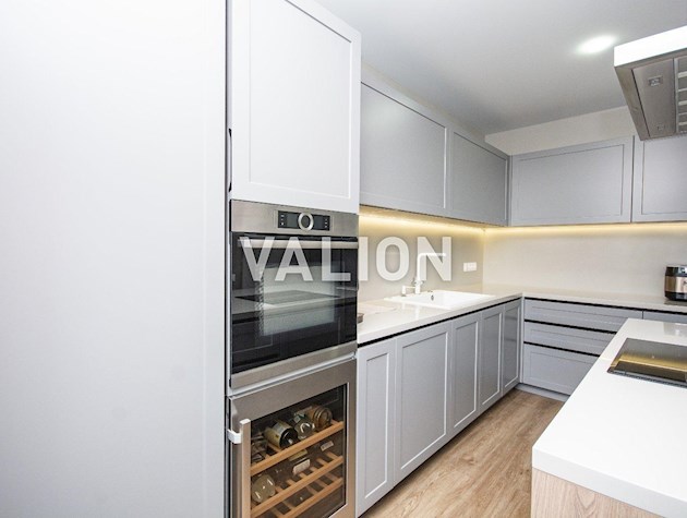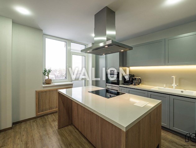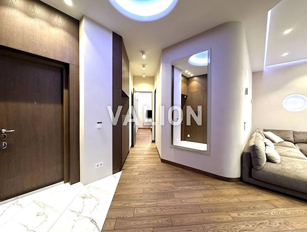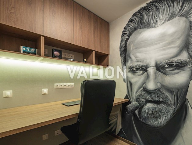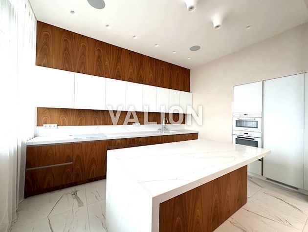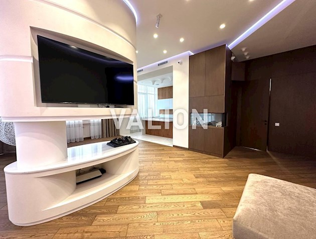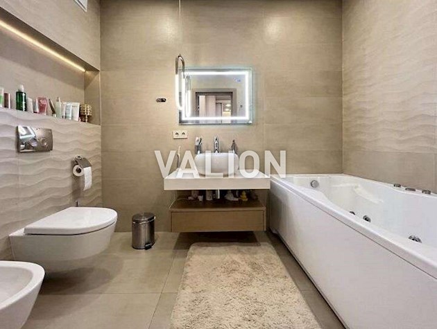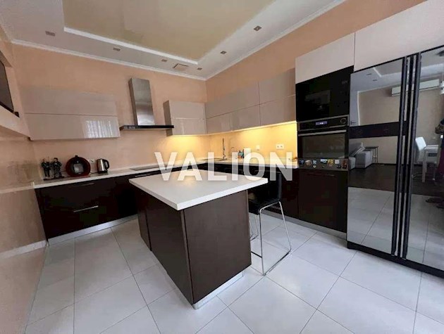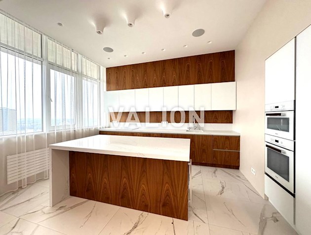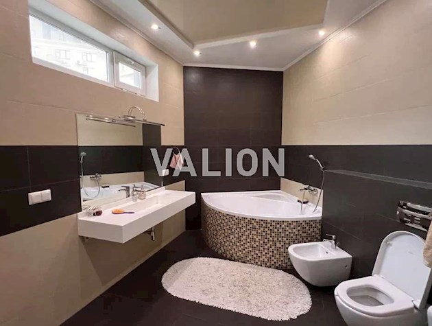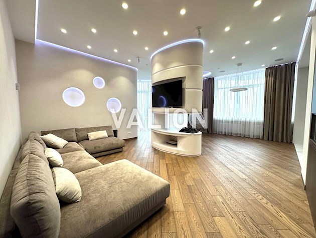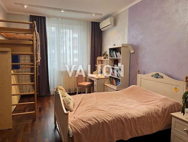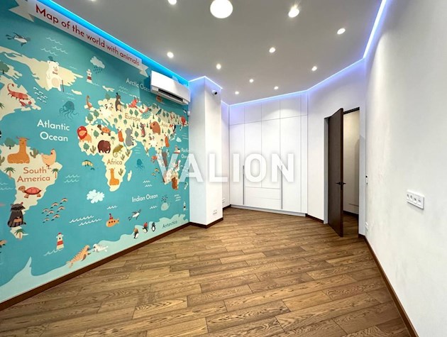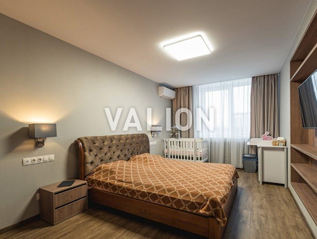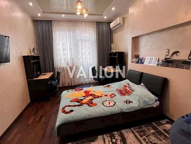 Квартира общей площадью 150м2 расположена на 4 этаже. Состоит из прихожей, кухни, гостинной, кабинета и трёх спален, двух санузлов. Дизайнерский ремонт сделан 1,5 года назад из высококачественных материалов. Металлопрофиль после застройщика поменяли на Rehau. Квартира оснащена техникой Bosh, Liebher, сантехникой Valleroy s Bosh, установлены смесители Grohe. Для интерьера выбрали мебель Blanche, Egger, фурнитуру Blum. Установлена Ajax система контроля от протечек воды. Счётчики на воду, тепло, электроэнергию; система очистки воды Осмос. В санузлах полы с подогревом. В каждой комнате установлен кондиционер фирмы Cooper Hunter. В двух спальнях (детских комнатах) решение о выборе мебели остаётся за новым хозяином. В комнатах также выполнен ремонт, для проживания не использовались.